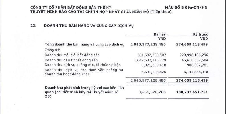 Doanh thu môi giới ghi nhận gần 382 tỷ đồng, tăng 72% so với cùng kỳ. Doanh thu quảng cáo, tổ chức sự kiện 3,9 tỷ đồng. Doanh thu từ dịch vụ cho thuê văn phòng và hoạt động khác 5,7 tỷ đồng.