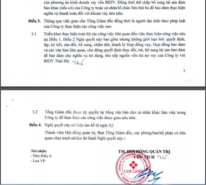 CenLand cũng thông qua phương án cầm cố, thế chấp một phần dự án trên cho khoản vay từ BIDV. Đồng thời thế chấp bổ sung tài sản đảm bảo khác (nếu có) của công ty hoặc bên thứ ba để đảm bảo nghĩa vụ thanh toán cho khoản vay.