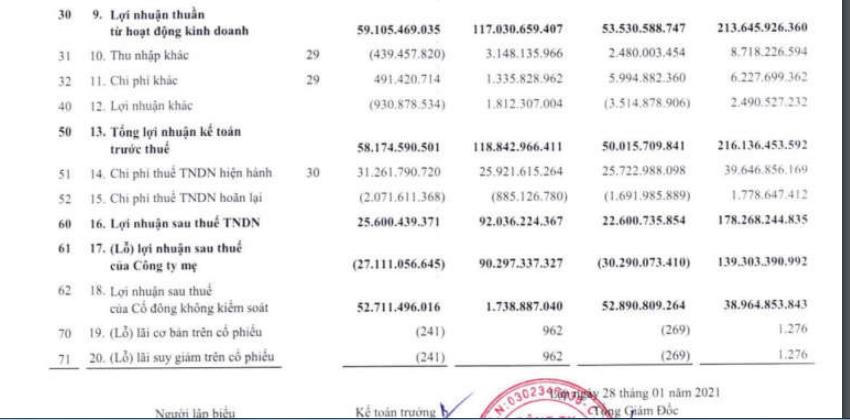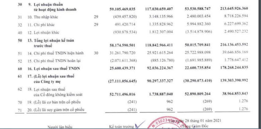 Trừ đi chi phí bán hàng, chi phí quản lý doanh nghiệp, quý 4 CEO Group lãi thuần 67,5 tỷ đồng – giảm mạnh so với số lãi thuần 258 tỷ đồng ghi nhận quý 4/2019. Ngoài ra, quý 4 vừa qua công ty ghi nhận khoản chi phí khác hơn 23 tỷ đồng, dẫn tới lợi nhuận trước thuế còn 47 tỷ đồng.
