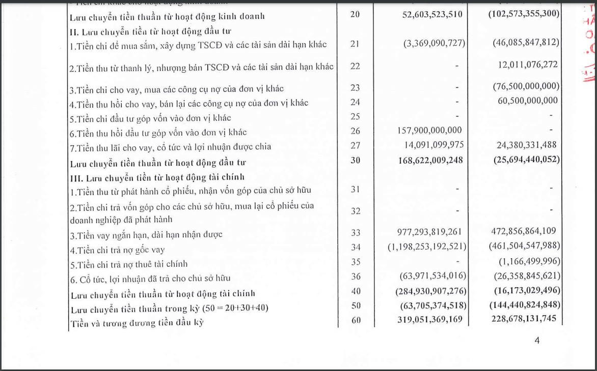 Nên lưu ý, dòng tiền kinh doanh của CEO đã được cải thiện với mức dương 53 tỷ đồng, trong khi cùng kỳ năm ngoái âm hơn 102 tỷ đồng. Dòng tiền từ hoạt động đầu tư cũng ghi nhận dương gần 169 tỷ đồng, cùng kỳ âm gần 26 tỷ đồng. Tuy nhiên, dòng tiền từ hoạt động tài chính lại âm gần 285 tỷ đồng (cùng kỳ cũng âm 16 tỷ đồng). Nguyên nhân do doanh nghiệp chi trả nợ gốc vay gần 1.200 tỷ đồng trong khi nhận về tiền vay chỉ 977 tỷ đồng.