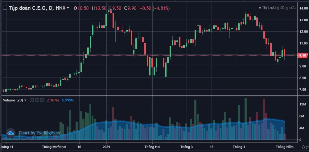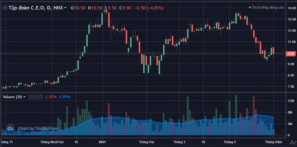 Kết thúc phiên giao dịch ngày 4/5/2021, thị giá cổ phiếu CEO ở ngưỡng 10.000 đồng/cp.