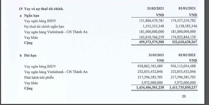 Kết thúc quý 1, nợ phải trả của CEO Group ghi nhận hơn 3.785 tỷ đồng, giảm 5% so với đầu kỳ. Trong đó, tổng dư nợ đi vay chiếm 51%, ghi nhận gần 1.934 tỷ đồng.