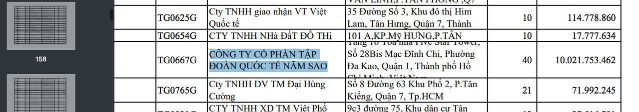 Cũng theo danh sách công khai, Công ty cổ phần Tập đoàn Quốc tế Năm Sao có địa chỉ tại số 28Bis Mạc Đĩnh Chi, phường Đa Kao, quận 1, TP. HCM có số tháng chậm đóng bảo hiểm xã hội 40 tháng, số tiền hơn 10 tỷ đồng.
