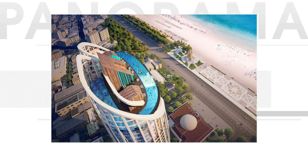 Điểm nhấn của Panorama bể bơi nước mặn đáy kính vòng quanh nóc tòa tháp trị giá hàng chục tỷ đồng, du khách sẽ được tận hưởng cảm giác vừa tắm biển ở độ cao 160m và ngắm nhìn toàn cảnh thành phố sôi động.