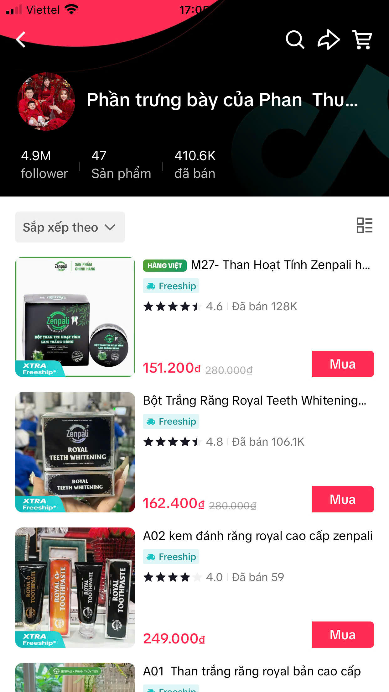 Theo hiển thị, Tiktok shop của Phan Thủy Tiên đã bán ra khoảng 410.600 sản phẩm, với mặt hàng bán chạy nhất là Bột than hoạt tính trắng răng.