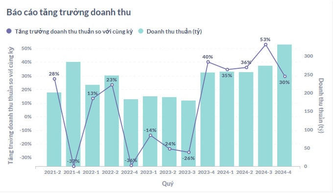 Lũy kế cả năm 2024, doanh thu đạt 1.118,67 tỷ đồng, tăng 37,36% so với cùng kỳ, lợi nhuận lũy kế đạt 106,68 tỷ đồng, tăng 39,43% so với cùng kỳ.Về tình hình tài chính trong quý 4/2024, chi phí tài chính tăng 11,11% so với cùng kỳ, trong đó chi phí lãi vay giảm 15,79% so với cùng kỳ.