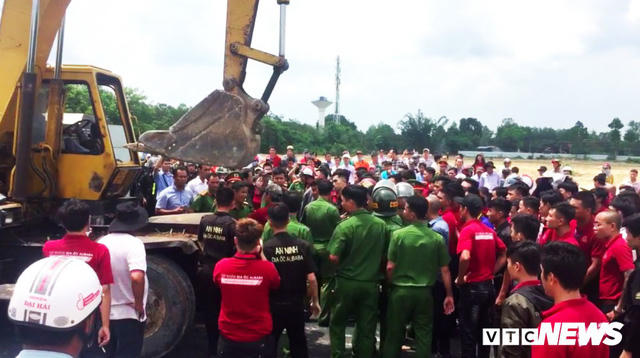 Trong lúc cơ quan chức năngthực hiện việc cưỡng chế tại xã Tóc Tiên, gần 100 nhân viên địa ốc Alibaba có hành vi ngăn chặn, chống đối bằng cách dùng gạch, đá đập phá xe cuốc, xe cẩu của đoàn cưỡng chế.