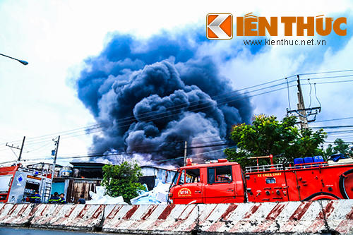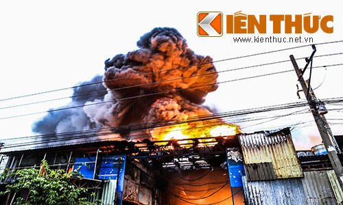 Ngọn lửa lớn kèm theo cột khói bao trùm cả khu vực.