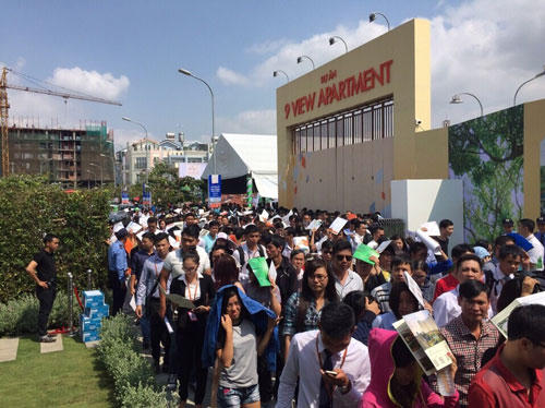 TNNĐ-Ngày 20-3, hàng ngàn người đã chen nhau, đứng chờ ngoài nắng để tham quan nhà mẫu và đăng ký mua căn hộ tại dự án 9View Apartment do Công ty CP Đầu tư kinh doanh địa ốc Hưng Thịnh (Hung Thinh Corp) làm chủ đầu tư.