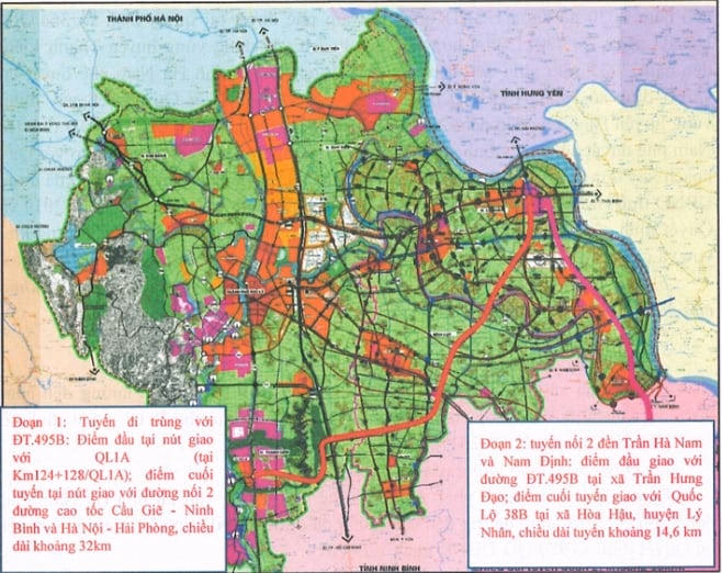 Dự án này có tổng vốn đầu tư 4.950 tỷ đồng với cơ cầu nguồn vốn gồm ngân sách Trung ương (2.500 tỷ đồng) và ngân sách tỉnh (2.450 tỷ đồng); gồm 2 đoạn tuyến với tổng chiều dài 46,5km, trong đó tuyến số 1 kết nối Quốc lộ 1 với đường cao tốc Hà Nội - Ninh Bình, Quốc lộ 21A, Quốc lộ 21B, đường nối hai cao tốc Hà Nội - Hải Phòng với cao tốc Cầu Giẽ - Ninh Bình.