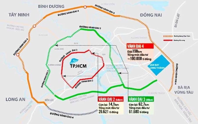 Dự án Đầu tư xây dựng đường Vành đai 4 TP. Hồ Chí Minh có tổng vốn đầu tư cho giai đoạn 1 là hơn 112.000 tỷ đồng.