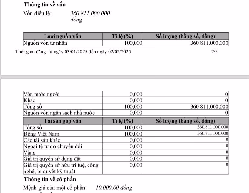 Đồng thời, công ty cũng tăng vốn điều lệ từ 301,27 tỷ đồng lên 360,811 tỷ đồng. Cổ đông góp vốn không được tiết lộ.