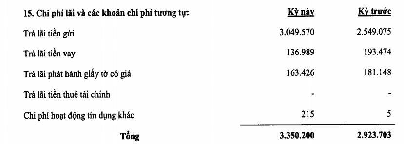 Cụ thể, 9 tháng đầu năm, LienVietPostBank ghi nhận chi phí lãi và các khoản chi phí tương tự tăng thêm hơn 800 tỷ đồng so với cùng kỳ, lên mức 8.335 tỷ đồng. Trong đó, trả lãi tiền gửi tăng hơn 390 tỷ đồng, lên gần 6.112 tỷ đồng; trả lãi phát hành giấy tờ có giá cũng tăng thêm 530 tỷ đồng, tương đương tăng 57% so với cùng kỳ, lên mức 1.460 tỷ đồng