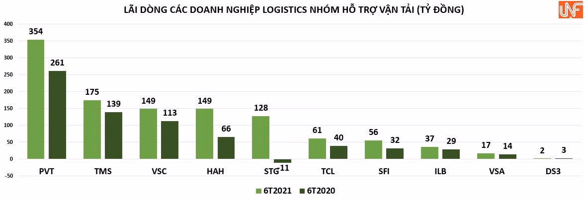 Kết quả, khép lại nửa đầu năm 2021, doanh nghiệp logistics đã dần cho thấy sự phục hồi rõ nét so với năm 2020. Theo thống kê của người viết, các doanh nghiệp logistics phần lớn đều có kết quả kinh doanh khởi sắc. Tuy nhiên, vẫn có doanh nghiệp ghi nhận lợi nhuận giảm mạnh, thậm chí thua lỗ.