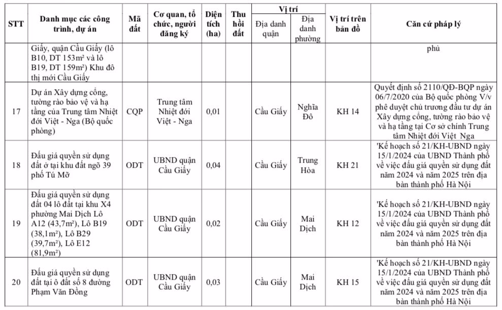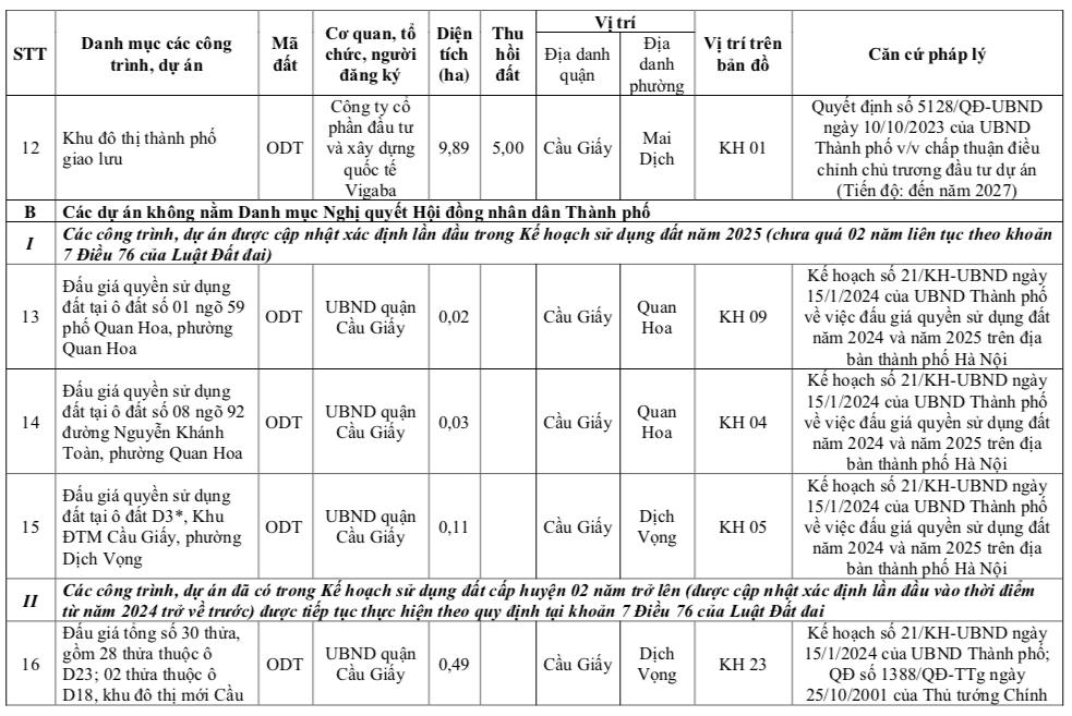 Theo kế hoạch sử dụng đất năm 2025, quận Cầu Giấy sẽ triển khai 7 dự án đấu giá quyền sử dụng đất tại 11 ô đất.