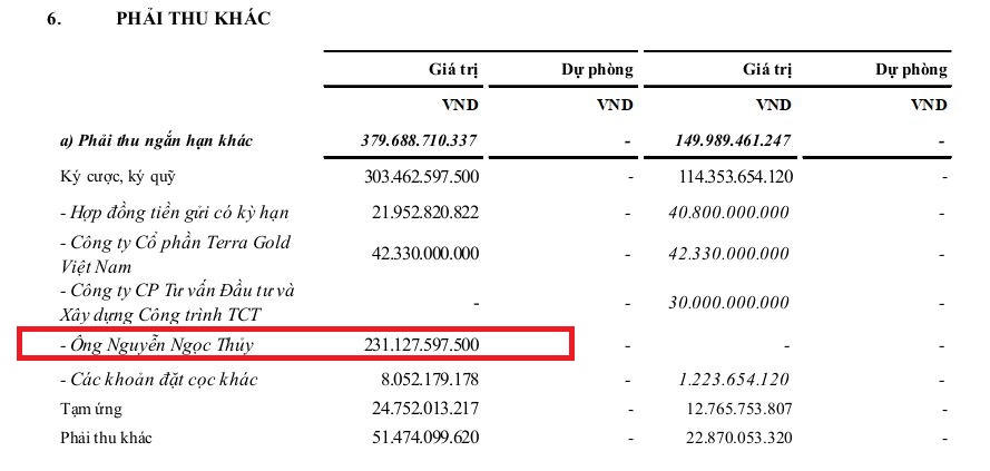 Tính đến cuối quý 3/2020, Apax Holdings ghi nhận khoản ký cược, ký quỹ phải thu ngắn hạn hơn 231 tỷ đồng cho ông Nguyễn Ngọc Thủy.
