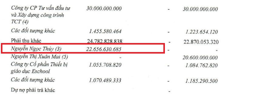 Cập nhật tại ngày 30/6/2020, Apax Holdings ghi nhận khoản phải thu ngắn hạn hơn 256 tỷ đồng cho ông Nguyễn Ngọc Thủy (Chủ tịch HĐQT Apax Holdings). Trong đó, 233,7 tỷ đồng là khoản tạm ứng ngắn hạn và 22,65 tỷ đồng là phải thu khác.