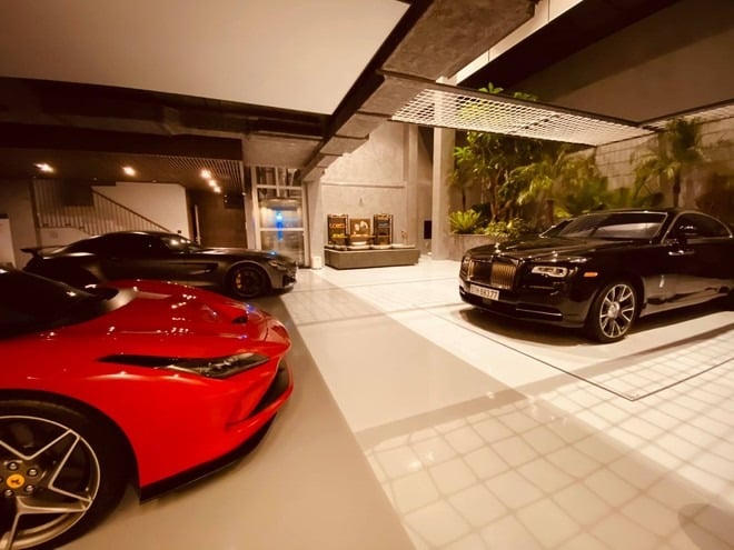 Gara cũng là một điểm nhấn phải kể đến trong căn biệt thự của Cường Đô La. Theo đó, không gian này được vị doanh nhân thiết kế để có thể chứa được những chiếc siêu xe mà anh sở hữu như McLaren 720S, Ferrari 488 GTB Spider...