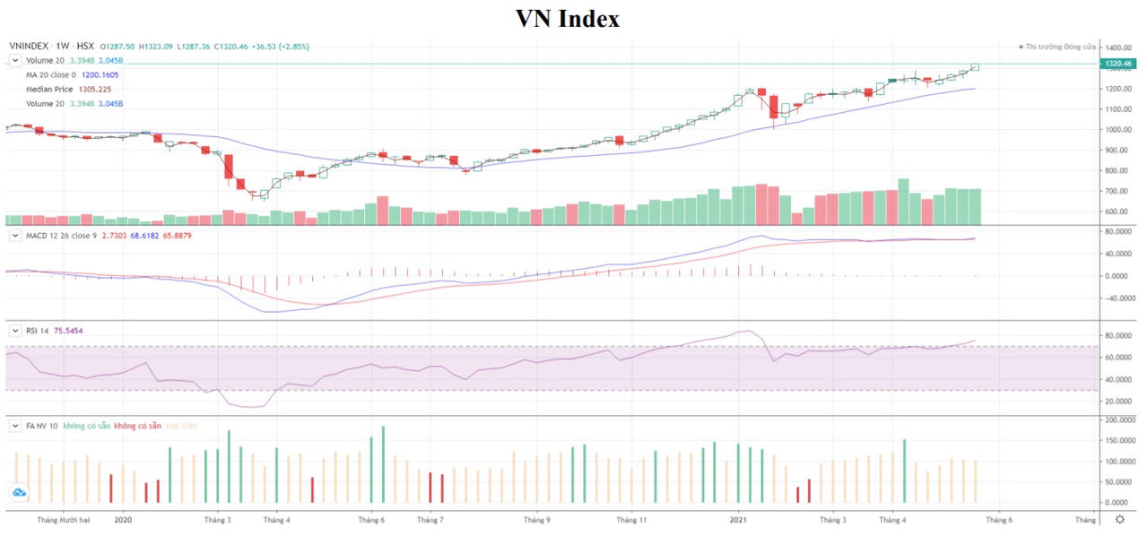 VN-Index ghi nhận tuần hồi phục tăng điểm thứ 4 liên tiếp và chính thức vượt khỏi ngưỡng 1.300 một cách thuyết phục với thanh khoản được cải thiện. Tiếp nối đà hồi phục từ tuần trước đó, lực cầu tiếp tục chiếm ưu thế trên thị trường, giúp chỉ số này dễ dàng vượt qua mốc 1.290 điểm trong phiên thứ hai đầu tuần (24/5).