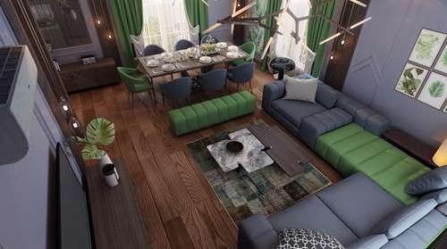 Để đảm bảo tính liên kết cho không gian, bạn có thể sử dụng các loại đồ trang trí cùng chất liệu, cùng kiểu dáng hoặc màu sắc tại khu bếp hay khu tiếp khách. Ví dụ, bạn chọn bình hoa trang trí màu xanh lá cây cho bàn ăn, bạn có thể dùng gối ôm cùng tông màu cho sofa. Cách trang trí này giúp không gian của bạn tuy có 3 chức năng riêng biệt nhưng vẫn là một không gian sống duy nhất, hài hòa.