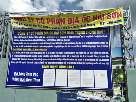 | Bảng thông báo của Công ty Hải Sơn - chủ đầu tư dự án |