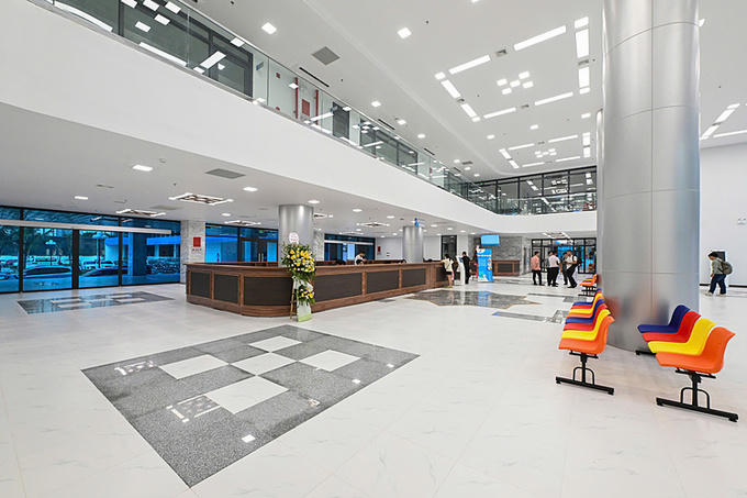 Khu mổ của bệnh viện bao gồm 11 phòng được trang bị hiện đại để phục vụ các kỹ thuật gây mê, giảm đau và phẫu thuật. Bệnh viện có hai khu vực chính: Đơn nguyên 1A bao gồm Khoa khám bệnh với năng lực khám khoảng 1.000 lượt/ngày; khu cấp cứu, nghiệp vụ kỹ thuật và cận lâm sàng; cùng khu hành chính. Đơn nguyên 1B có chức năng điều trị nội trú và cung cấp dịch vụ tích hợp.