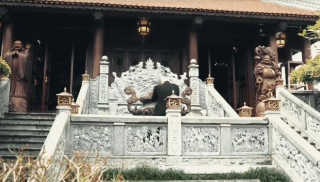 Từ ngoài vào có thể thấy chiếc cổng bằng đá uy nghiêm, bề thế, thiết kế theo mô phỏng cổng làng, đình cổ với hoa văn chạm trổ vô cùng tinh xảo. Tiến vào bên trong là khuôn viên sân vườn với hàng cây xanh mát cùng với những phiến đá lớn được chạm khắc cầu kỳ.