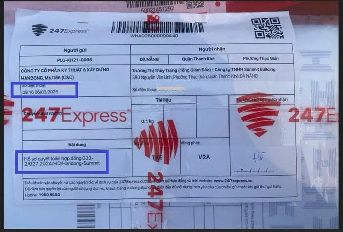 Đối với khoản thi công trị giá hơn 2,7 tỷ đồng chưa quyết toán, Công ty TNHH Summit Building cho rằng do đổi chủ nên không nhận được hồ sơ. Tuy nhiên, phía Công ty Handong cho biết, hồ sơ quyết toán đã được gửi nhiều lần cho chủ đầu tư, mới đây nhất vào ngày 26/3/2025.