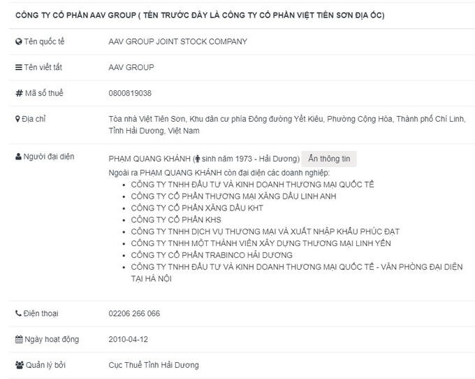 Liên danh nhà đầu tư được phê duyệt tại dự án này là Công ty TNHH Đầu tư phát triển Vượng Vũ - CTCP Phát triển công nghệ Lam Sơn - CTCP Việt Tiên Sơn Địa Ốc là nhà đầu tư Khu đô thị mới Thành Phú, thị trấn Quán Lào, huyện Yên Định, Thanh Hóa. Trong đó, CTCP Việt Tiên Sơn Địa Ốc được thành lập năm 2010, có trụ sở tại Chí Linh - Hải Dương. Là doanh nghiệp hoạt động trong lĩnh vực đầu tư xây dựng và kinh doanh bất động sản, kinh doanh thực phẩm đông lạnh, du lịch lữ hành và sản xuất kinh doanh thuốc đông nam dược, thực phẩm chức năng. Ngày 17/6/2022, Việt Tiên Sơn Địa Ốc được đổi tên thành AAV Group.
