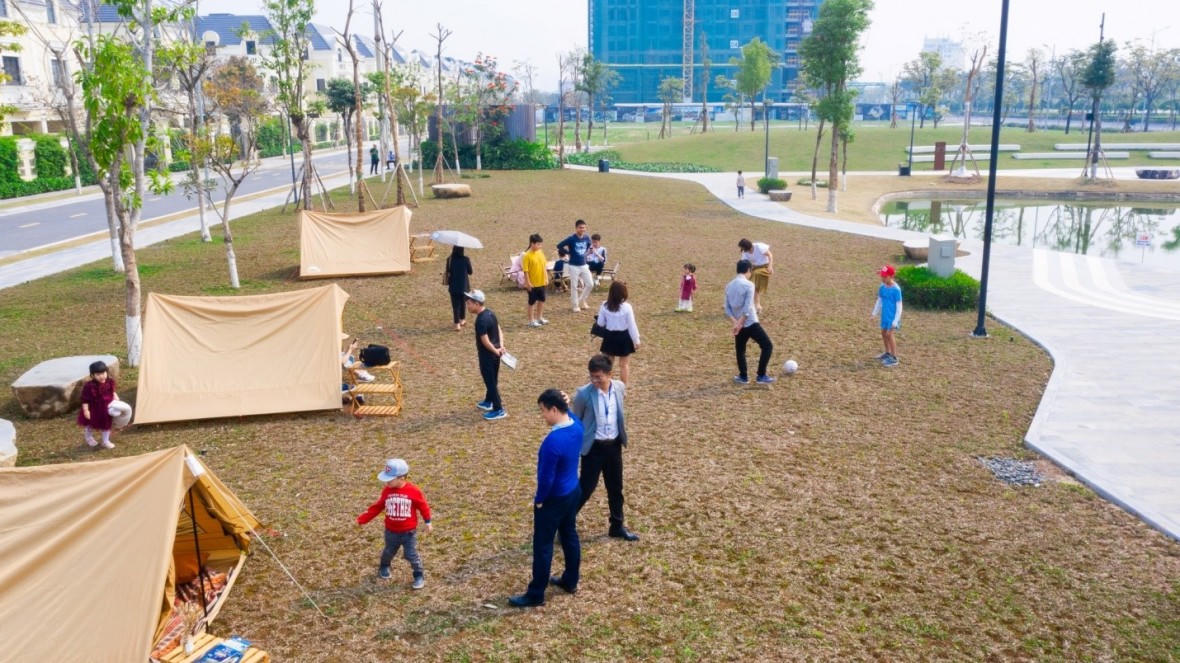 Đặc biệt, ngày 5/3 vừa qua, chủ đầu tư phối hợp cùng đơn vị phân phối Đất Xanh Miền Bắc tổ chức chương trình “Giai điệu ngọt ngào – đón chào gia chủ” nhằm tri ân phái đẹp nhân ngày Quốc tế Phụ nữ đang đến gần. Sự kiện thu hút đông đảo khách hàng tới tham gia, đắm mình trong không gian thơ mộng với những giai điệu ngọt ngào, trải nghiệm khu vực lều cắm trại và check-in tại các góc “sống ảo” tuyệt đẹp tại dự án.