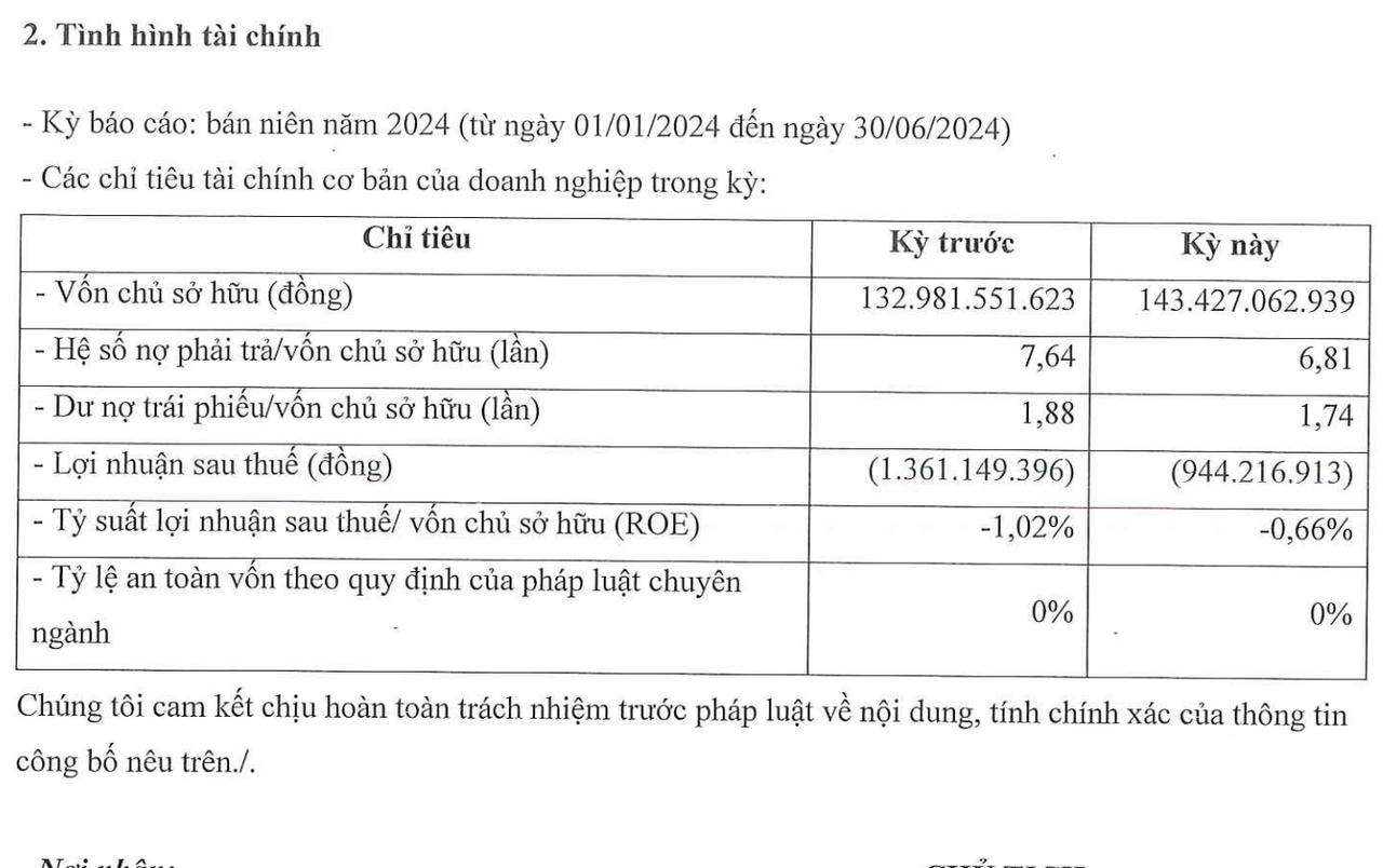 Công ty cổ phần Khách sạn Vịnh Hạ Long vừa công bố tình hình tài chính 6 tháng đầu năm 2024.