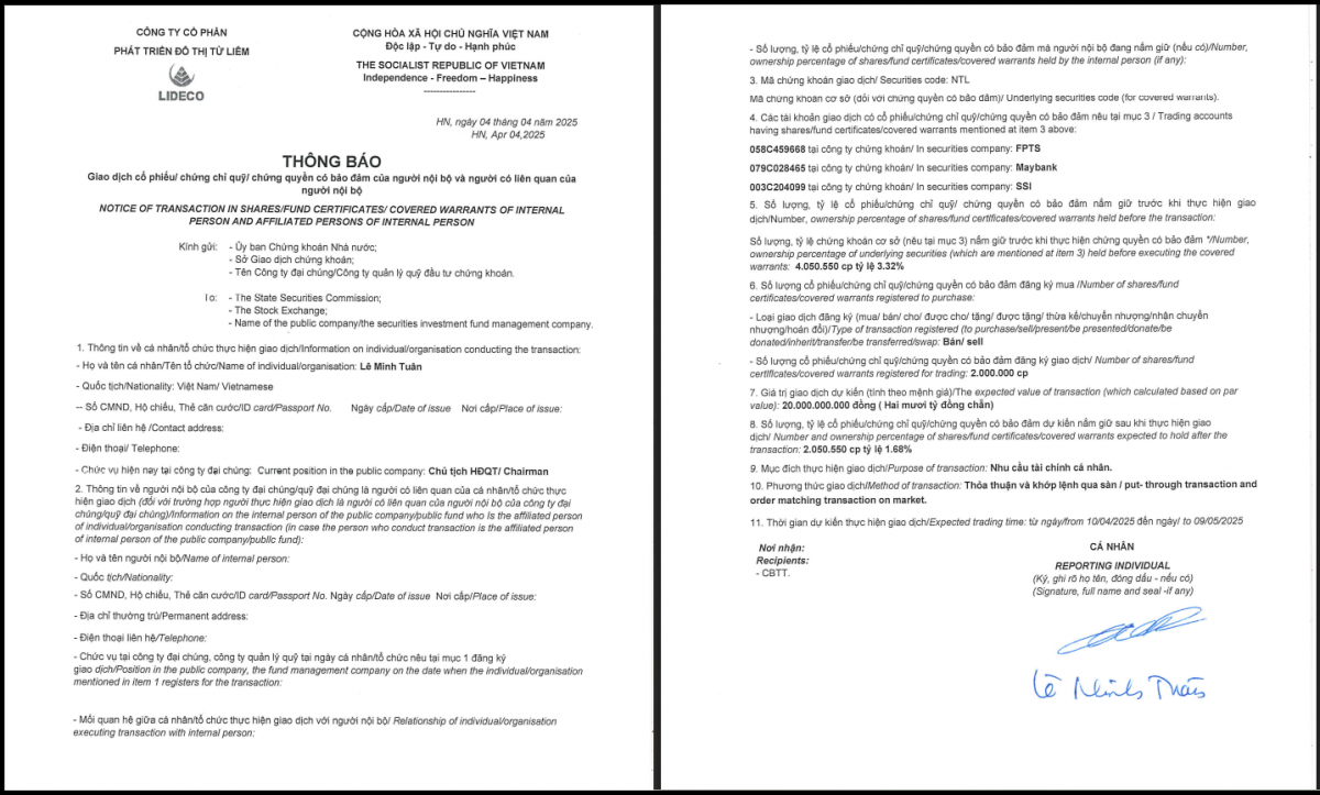 Chủ dự án Lideco Hoài Đức vẫn “hăng hái” với chứng khoán, “rót” thêm 150 tỷ đồng để chủ tịch đầu tư sau khi vừa có quyết định thoái bớt vốn?