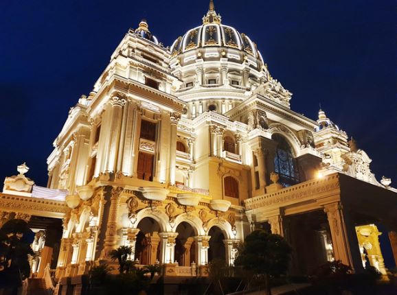 Khi bước vào bên trong tòa lâu đài, khách tham quan không khỏi choáng ngợp trước kiến trúc mang phong cách hoàng gia với ba tông màu chủ đạo: Trắng, vàng và đỏ.