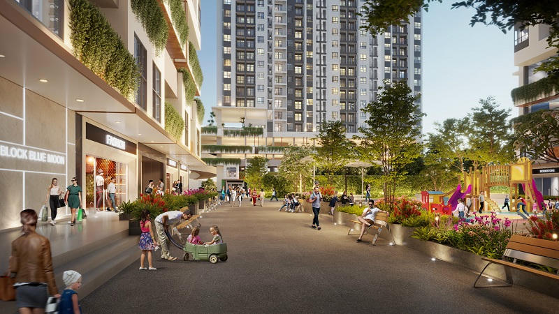 Đáng chú ý là chuỗi tiện ích nội khu đa dạng trong khu căn hộ và các mảng xanh hướng tới lối sống vì sức khỏe. Cư dân sẽ thừa hưởng không gian xanh mát với công viên cây xanh tại nội khu, hòa mình vào làn nước tươi mát tại hai hồ bơi tràn bờ… Khu gym, sân thể thao đa năng sẽ là nơi phù hợp để cư dân chăm sóc, rèn luyện sức khỏe. Nhà trẻ, khu vui chơi trẻ em cũng được bố trí xây dựng trong nội khu dự án dành riêng cho các cư dân nhí. Những không gian kết nối tình thân như khu BBQ ngoài trời cũng được xây dựng… Bên cạnh đó, với hệ thống shophouse đa dạng dịch vụ, chức năng được phát triển trong nội khu, cư dân dự án cũng có thể bắt trọn nhịp sống hiện đại ngay từ ngưỡng cửa.