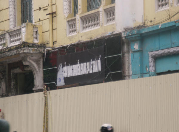 | Song, cho tới nay dự án vẫn không có sự thay đổi. Khách sạn Tràng Tiền rất mờ nhạt, không mấy người dân đi qua chú ý |