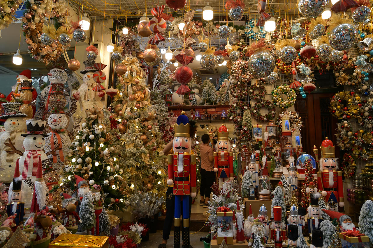 Chỉ còn hơn 1 tháng nữa là tới Noel, phố Hàng Mã đã khoác lên mình màu sắc rực rỡ bởi vô vàn những món đồ trang trí dành cho lễ Giáng sinh.