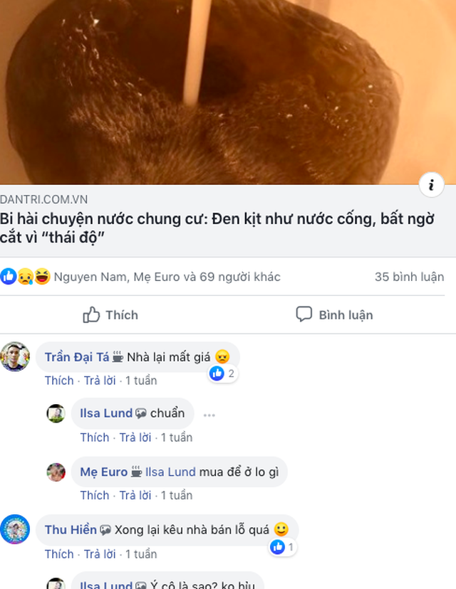 Tại một số chung cư, cư dân đã nhiều lần phản ánh cũng như chất vấn ban quản lý toà nhà và đơn vị cung cấp nước nhưng vẫn chưa nhận được câu trả lời thỏa đáng.