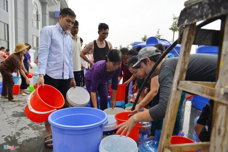 Việc xếp hàng lấy nước đã trở thành nỗi ám của của cư dân nơi đây. Ảnh: Zing.