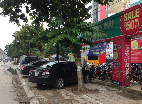 Phía bên kia đường, tòa nhà chung cư Sông Đà cũng trong tình trạng tương tự. Nằm ngay sát mặt đường nên các tầng thương mại đã được một hệ thống điện máy thuê lại. Phần diện tích trống trước nhà đang là bãi gửi xe. Lối đi chính của người dân là phần cửa ngách bên cạnh tòa nhà.