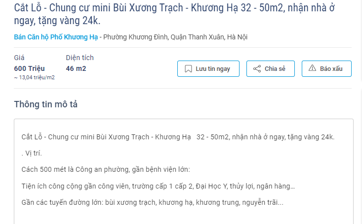 Đơn cư như một "chung cư mini" nằm trên phố Bùi Xương Trạch, Thanh Xuân, “chủ nhà” rao bán “cắt lỗ” cắt căn hộ từ 32 - 50m2, giá bán chỉ khoảng 13 triệu đồng.