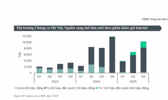 "Quý III ghi nhận mức cao kỷ lục về nguồn cung mới từ các dự án có giá chào bán trên 120 triệu đồng/m2 (phân khúc hạng sang, siêu sang), đạt hơn 2.000 căn mở bán. Các dự án ra hàng mới phân bổ đa dạng tại nhiều khu vực, trong đó nổi bật là Tây Hồ, Cầu Giấy và Long Biên.