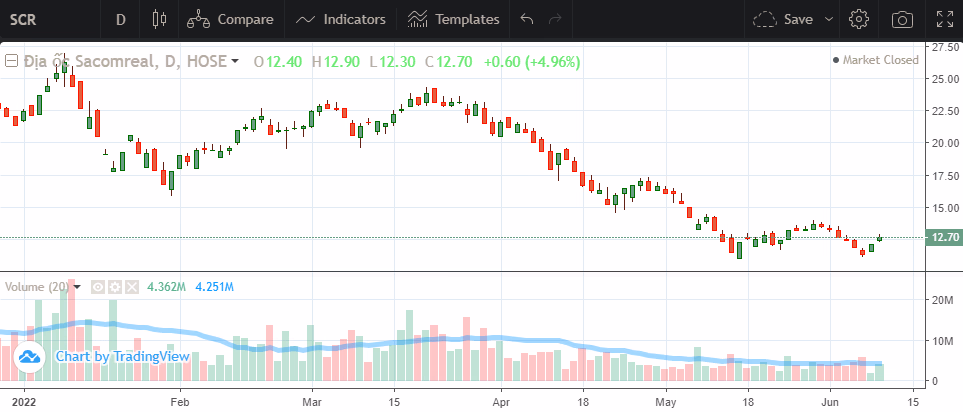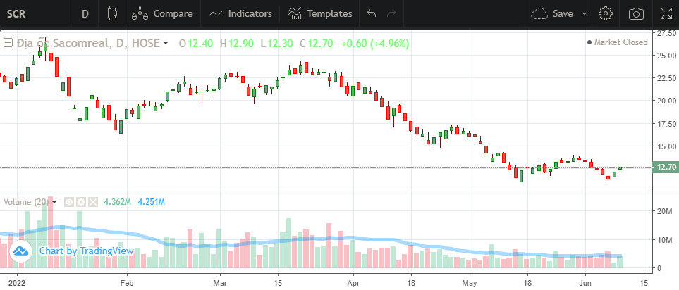 Tuy nhiên, thời điểm công bố phát hành, giá cổ phiếu SCR có diễn biến tăng nhưng thời gian gần đây, với những cú “sập” liên tiếp của thị trường chứng khoán khiến thị giá cổ phiếu SCR đang ở dưới giá phát hành. Cụ thể, kết thúc phiên giao dịch ngày 9/6 là 12.700 đồng/cp, giảm 41% so với thời điểm đầu tháng 4/2022. Trong khi giá chào bán cổ phiếu là 14.000 đồng/cp và 11.000 đồng/cp.