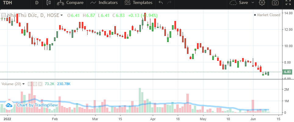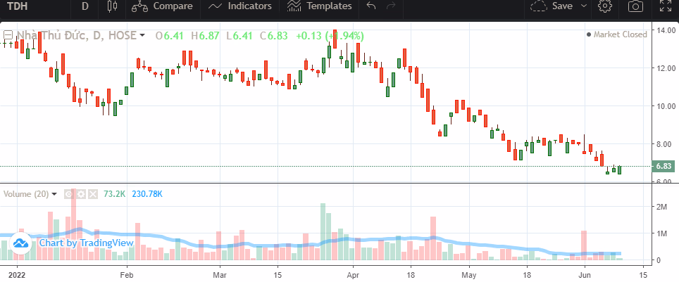 Thế nhưng, giá cổ phiếu TDH kết phiên 9/6 chỉ còn hơn 6.830 đồng/cp trong khi mức giá chào bán là 12.000 đồng/cp.