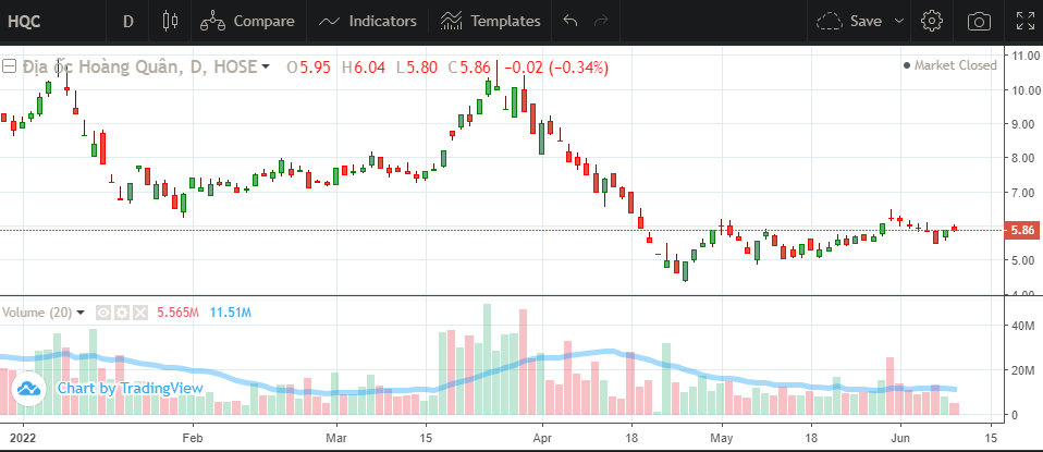 Thời điểm công bố kế hoạch, cổ phiếu HQC có diễn biến tăng giá nhưng kết phiên giao dịch ngày 9/6, thị giá cổ phiếu HQC chỉ ở mức 5.860 đồng/cp. Trong khi giá chào bán là 10.000 đồng/cp.