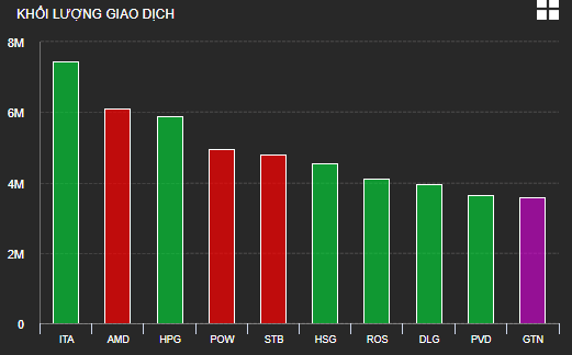 Thanh khoản thị trường giảm mạnh so với phiên trước với tổng khối lượng giao dịch chỉ đạt 250 triệu cổ phiếu, trị giá chỉ 3.800 tỷ đồng. Trong đó, có 3 cổ phiếu bất động sản lọt vào top khói lượng giao dịch toàn thị trường là ITA, AMD và DLG. ITA phiên hôm nay tăng 1,2% và khớp lệnh 7,4 triệu cổ phiếu. AMD và DLG khớp lệnh lần lượt 6 triệu cổ phiếu và 4 triệu cổ phiếu.