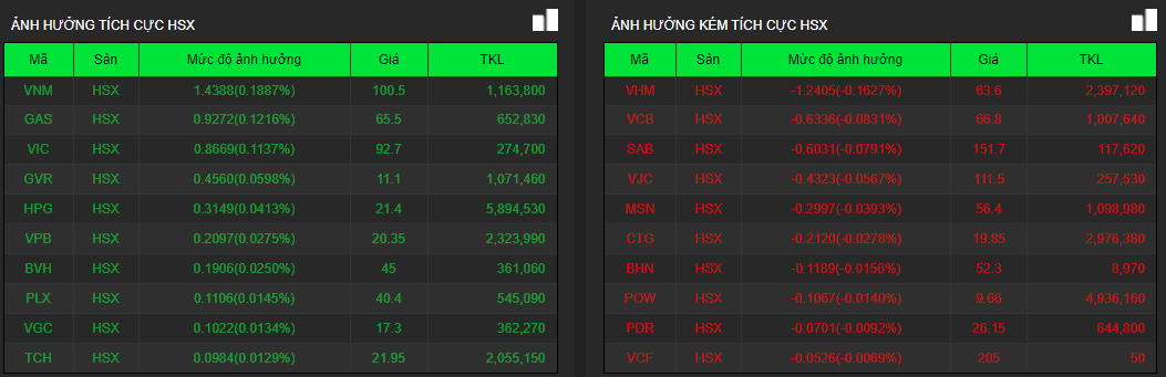 Các cổ phiếu có ảnh hưởng lớn nhất lên VN-Index phiên 5/5. Nguồn: VDSC