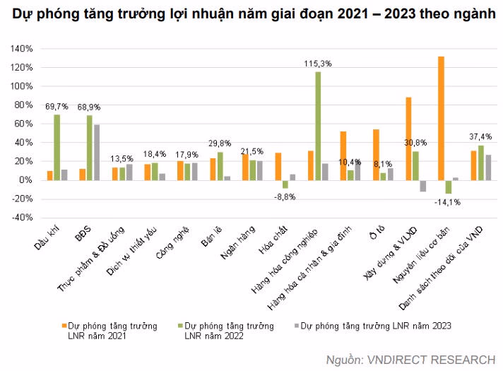 Một số ngành được dự báo có sự cải thiện mạnh mẽ trong tăng trưởng lợi nhuận bao gồm: Hàng hóa công nghiệp, bất động sản và dầu khí.