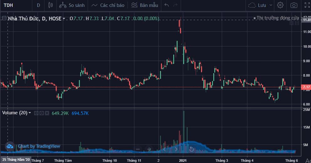 Do đó, giá cổ phiếu TDH đảo chiều liên tục. Từ mức đỉnh 11.350 đồng/cp tại phiên giao dịch ngày 29/12/2020, cổ phiếu TDH giảm về mức giá 7.170 đồng/cp tại phiên giao dịch ngày 4/6/2021, tương đương giảm 37%.