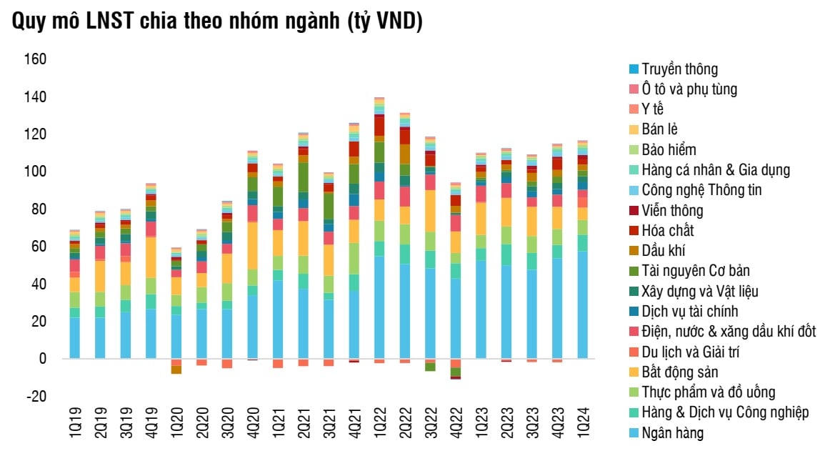 Nguyên nhân trên nhiều khả năng là kỳ vọng vào đà phục hồi lợi nhuận. Theo thống kê của Công ty Chứng khoán SSI, tổng lợi nhuận sau thuế quý I/2024 của hơn 1.000 doanh nghiệp trên sàn chứng khoán tăng 3,4% so với quý gần nhất, đánh dấu quý tăng lợi nhuận thứ hai liên tiếp và thiết lập mức lợi nhuận cao nhất trong vòng 7 quý.