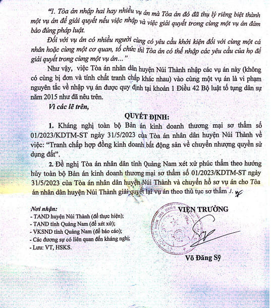 Văn phòng Cơ quan CSĐT Công an tỉnh Quảng Nam đã chuyển đơn tố cáo đến Phòng Cảnh sát kinh tế vụ việc “thu gần 76 tỷ đồng tiền bán 105 lô đất nền dự án Tam Anh Nam từ 2021 nhưng không xuất hóa đơn và không giao hàng cho bên mua”.